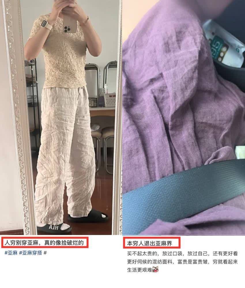真相是,亚麻的“松弛感”需要一个“不食人间烟火”的环境来维持。 它适合在恒温的空调房之间无缝切换,适合在私家车的后座安然躺平,唯独不适合我们这种需要在人间奔波的普通人。