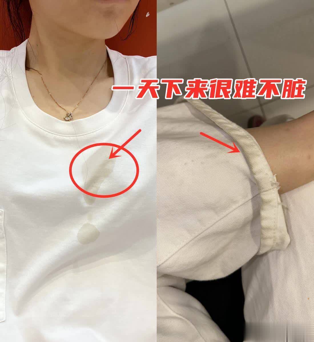 而普通人精心搭配了一身白色出门。结果,早上喝的咖啡不小心洒了一滴,中午吃的麻辣烫溅了一点红油,坐地铁时还不确定座位是否干净。(而且根据穿白色定律,一定会溅到污渍)▼▼