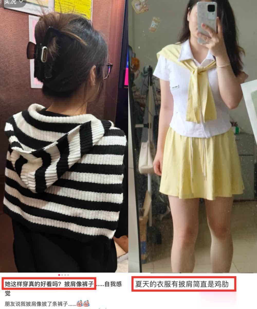 还有些大聪明商家直接换成装饰性披肩,没有任何实际功能,只是一个纯粹为了“凹造型”而存在的道具,显得廉价又奇怪。▼▼